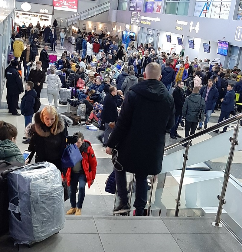 - В аэропорту обстановка накалилась до предела. Со вчерашнего вечера ни один самолет не улетел, люди спят на полу и там, где найдут свободное место. Гостиницу предлагают не всем. На эту минуту ни один рейс с 20:00 12 февраля так и не вылетел. Кого-то зарегистрировали и посадили в самолет, но люди просто ждут вылета уже в самолете. Представители аэропорта вяло отвечают на вопросы озабоченных граждан и ничего не обещают. Вылеты постоянно переносят не могут расчистить одну единственную полосу. В этой ситуации больше всего жаль детей, - пишет один из пассажиров в социальной сети.