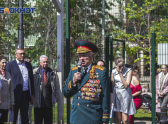Генерал-майор в отставке Степан Владимирович Томашевский выступил перед детьми и вручил представителям школ свои книги «Этих дней не смолкнет слава», которые рассказывают о подвигах советских людей в годы Великой Отечественной войны.