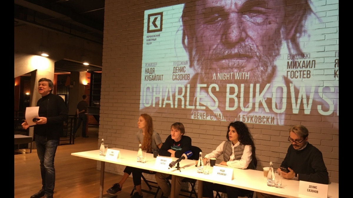 19 декабря проходила пресс-конференция в здании театра. На вопросы журналистов отвечали создатели нового спектакля «Вечер с Чарльзом Буковски», премьера которого состоялась 18 декабря. Надя Кубайлат – молодой режиссер, выпускница курса Сергея Женовача (новый худрук и директор Московского Художественного театра).