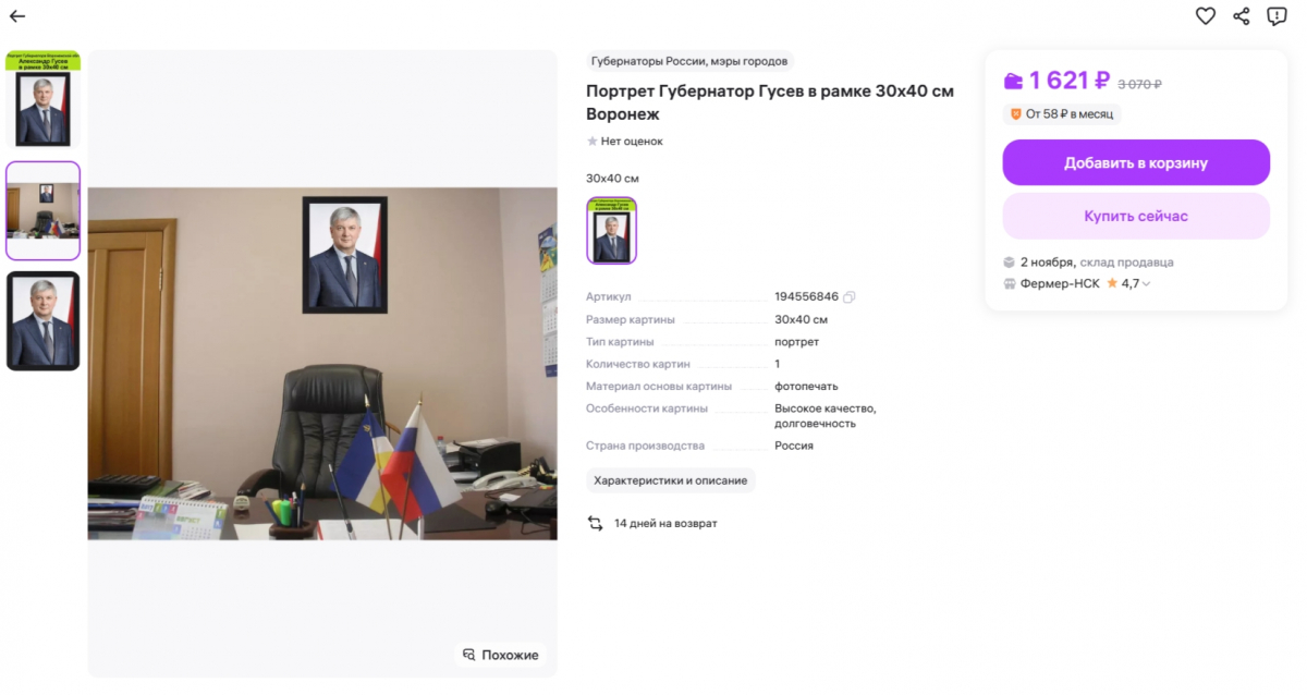 На популярном маркетплейсе пользователи заметили необычные товары - плакаты и постеры с изображением губернатора Воронежской области Александра Гусева.