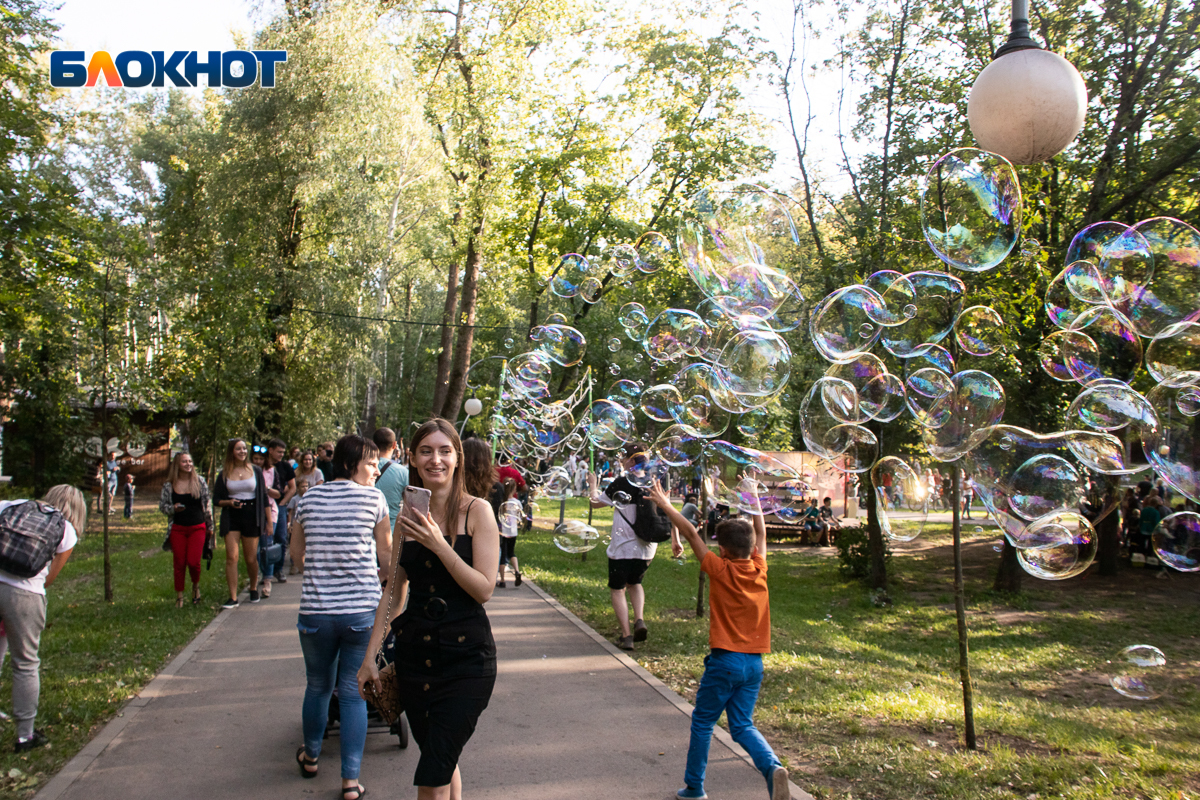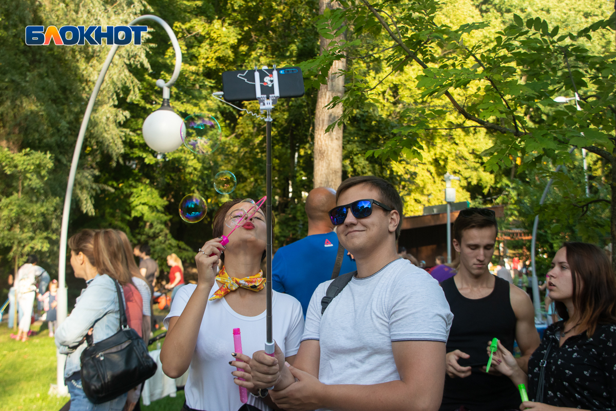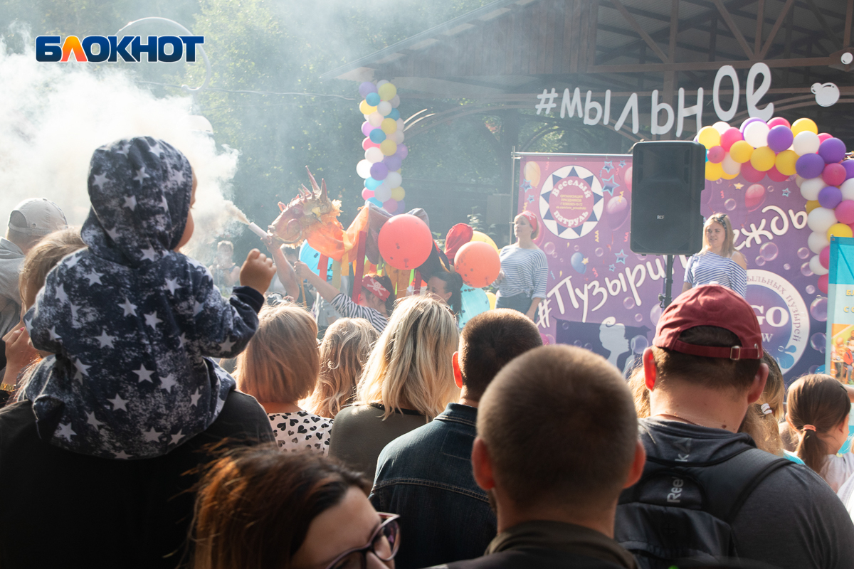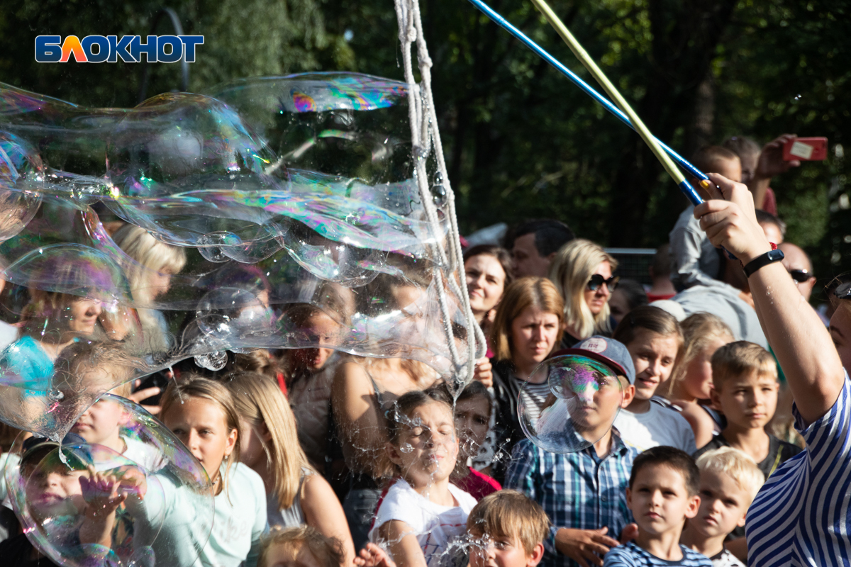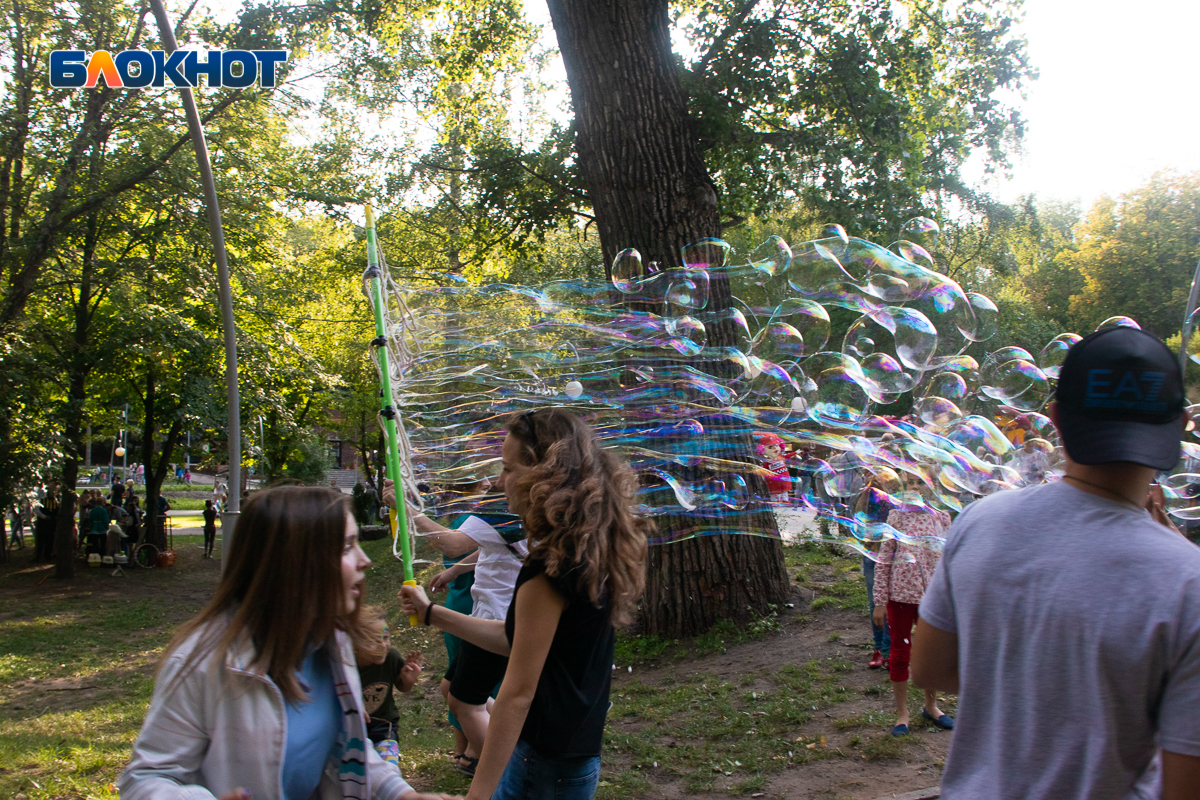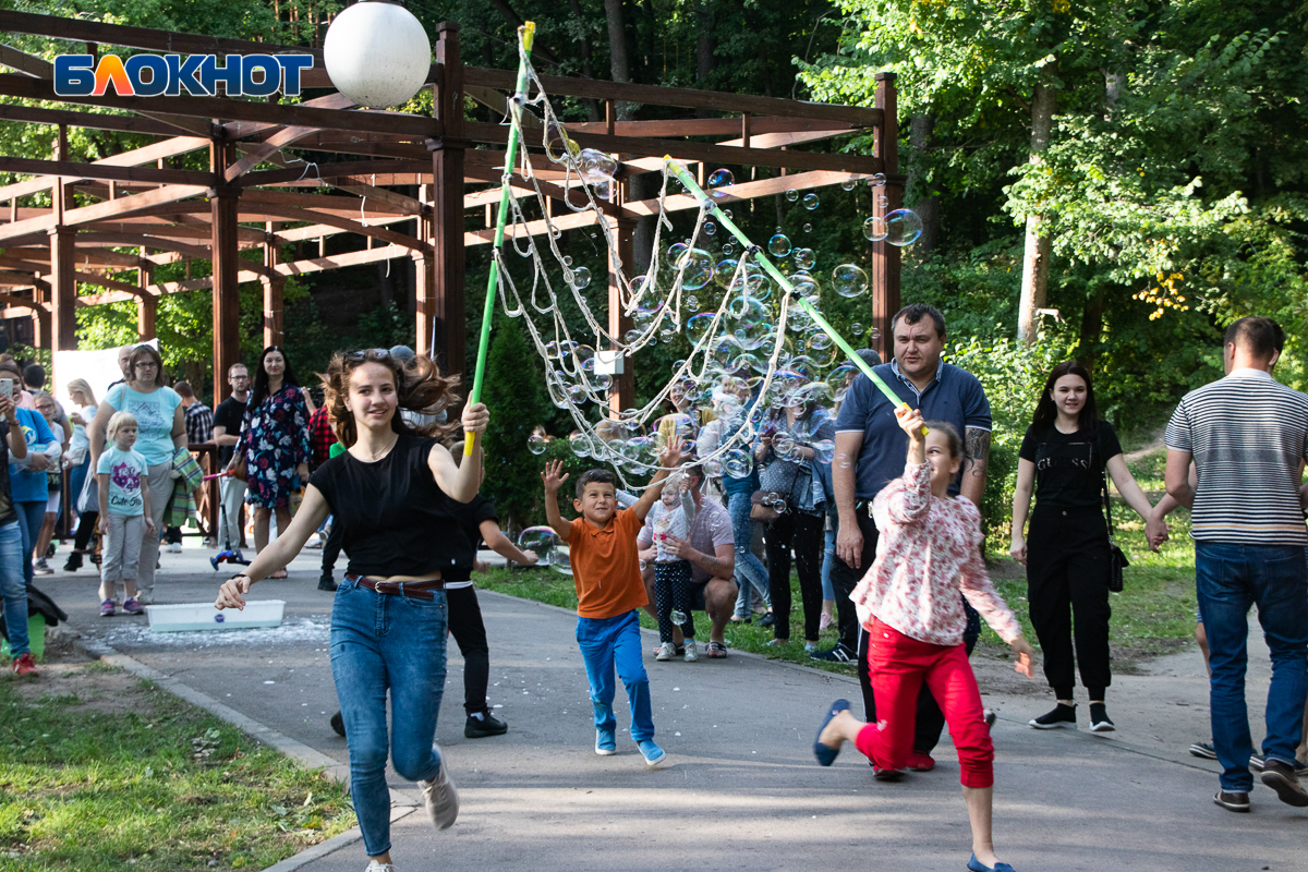 11 августа на территории Центрального парка прошло «Мыльное нашествие». На благотворительный фестиваль пришли сотни воронежцев, которые своими глазами увидели шоу мыльных пузырей, выступление артистов, мастер-классы и многое другое. На фестивале потратили сотни литров мыльного раствора.