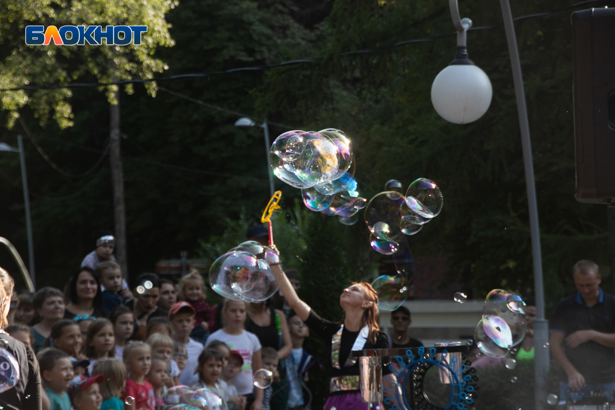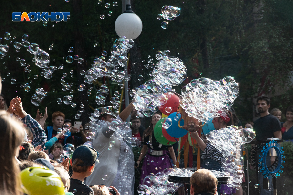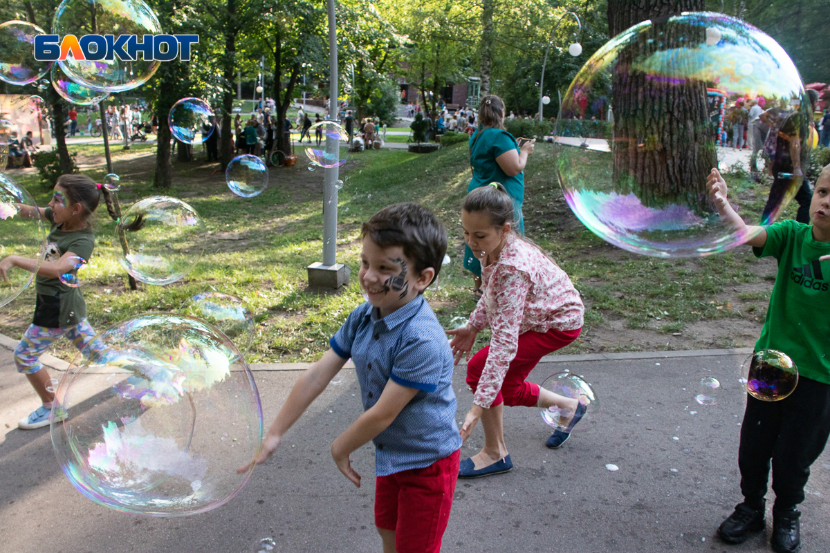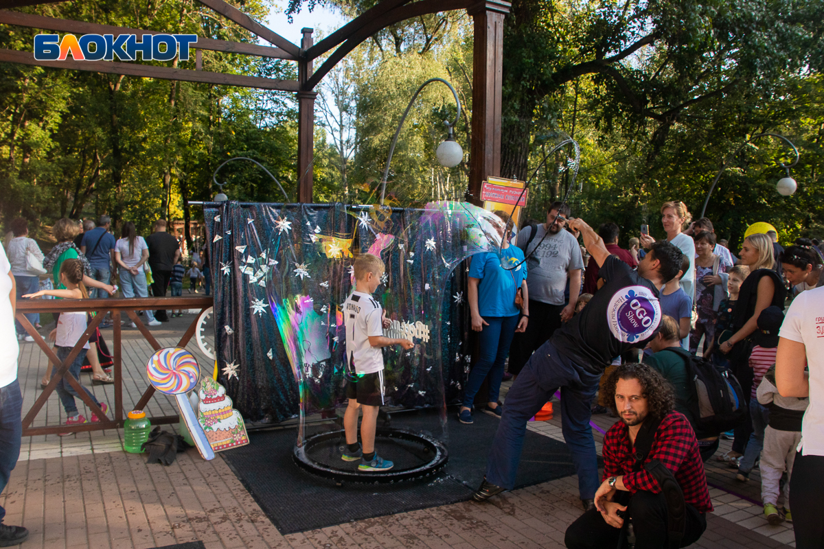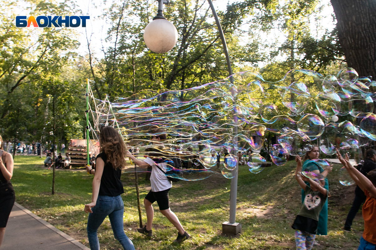 11 августа на территории Центрального парка прошло «Мыльное нашествие». На благотворительный фестиваль пришли сотни воронежцев, которые своими глазами увидели шоу мыльных пузырей, выступление артистов, мастер-классы и многое другое. На фестивале потратили сотни литров мыльного раствора.