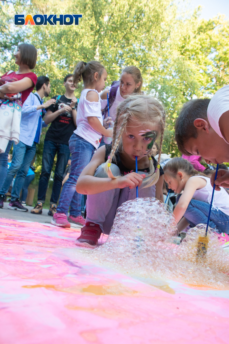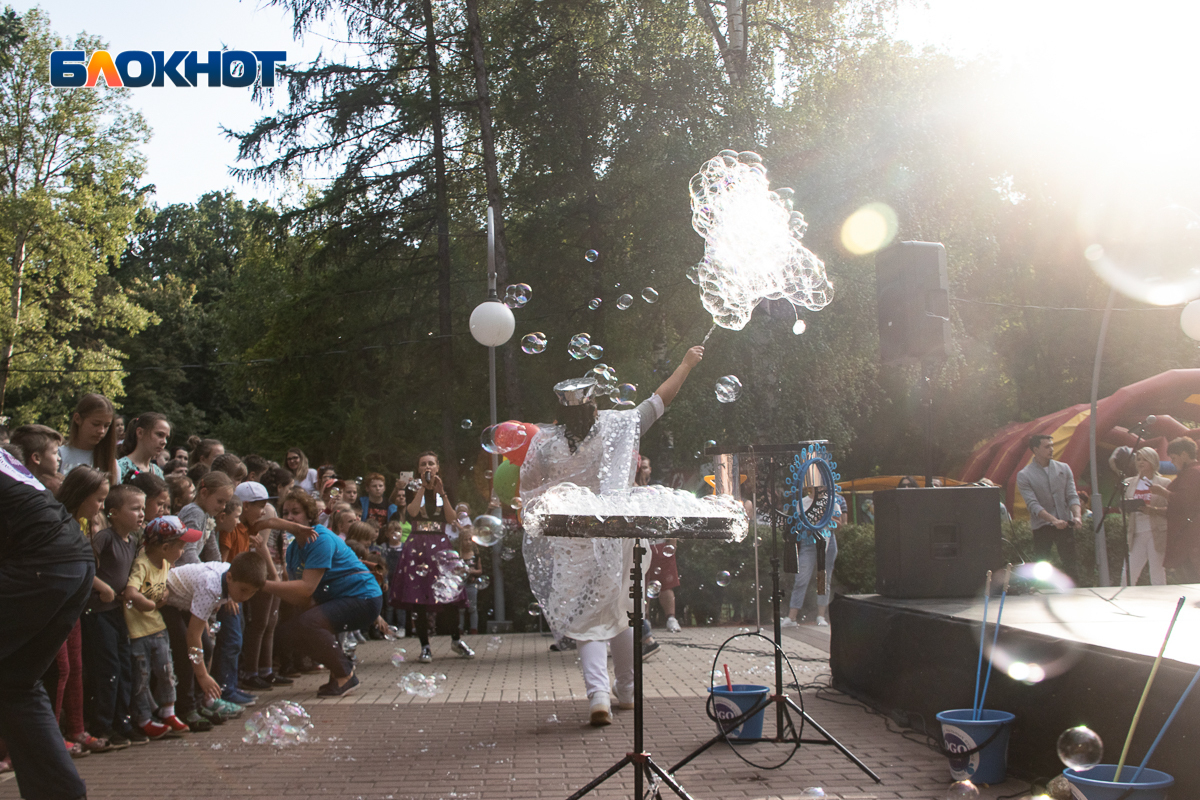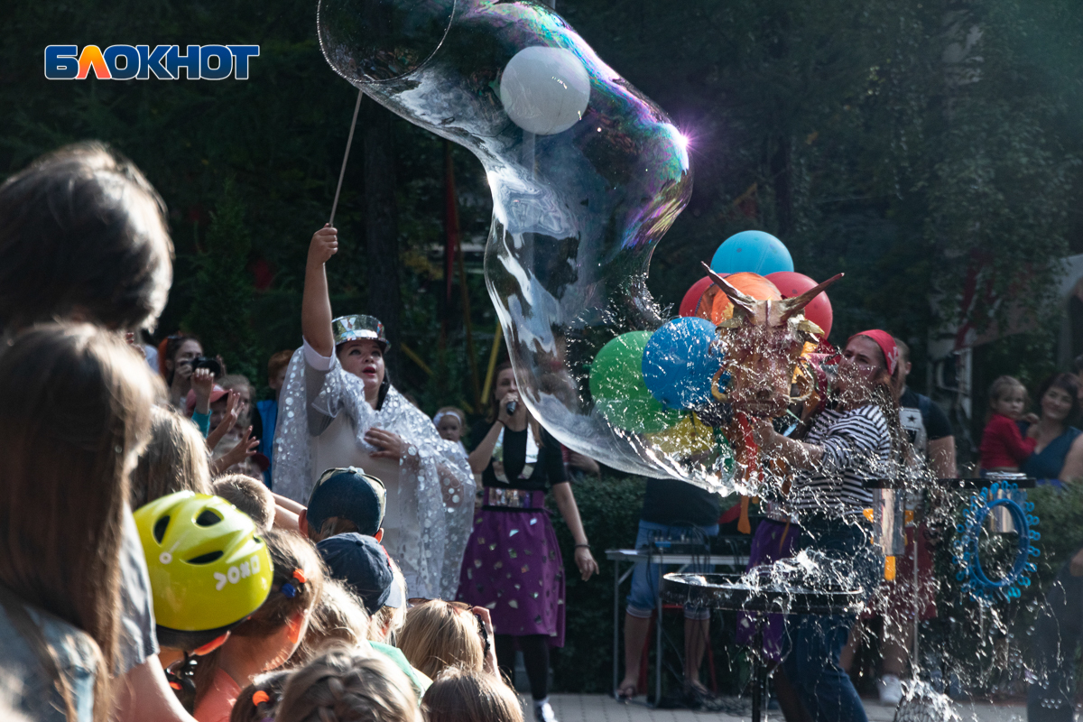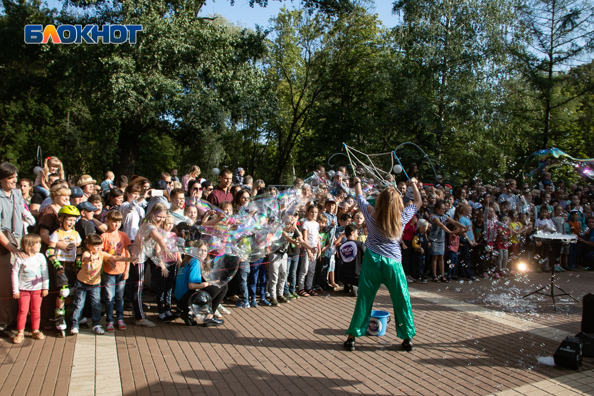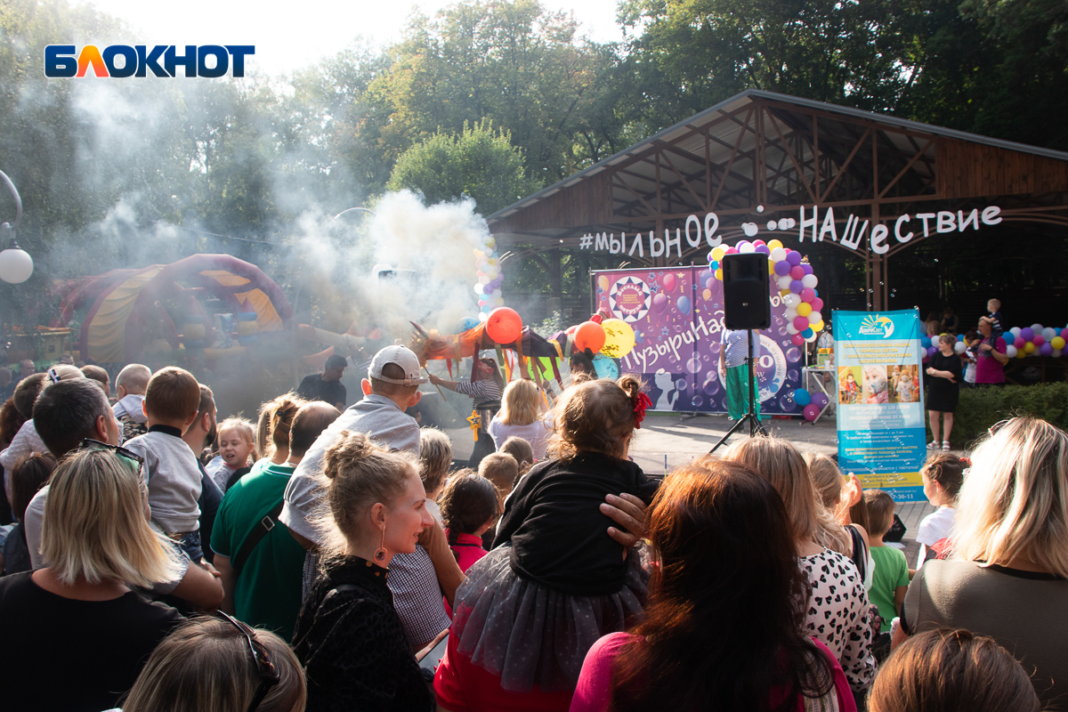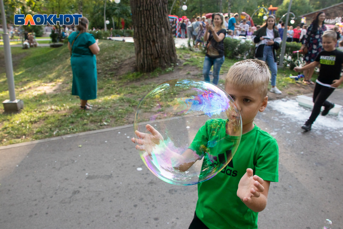 11 августа на территории Центрального парка прошло «Мыльное нашествие». На благотворительный фестиваль пришли сотни воронежцев, которые своими глазами увидели шоу мыльных пузырей, выступление артистов, мастер-классы и многое другое. На фестивале потратили сотни литров мыльного раствора.