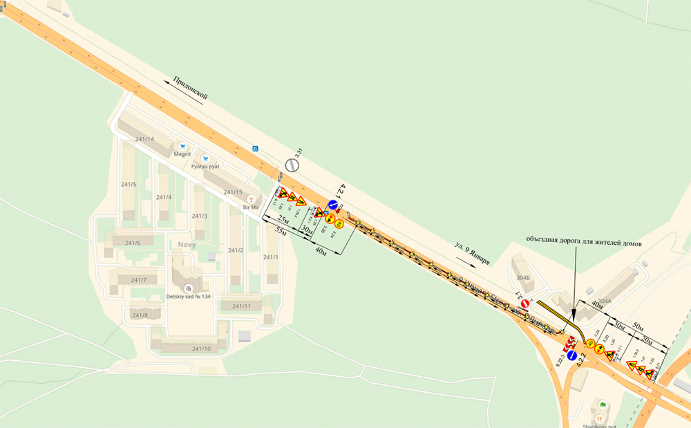 Такое ограничение связано с ремонтными работами развязки на пересечении улиц 9 Января – Антонова-Овсеенко – Героев-Сибиряков, в частности с устройством сетей ливневой канализации.