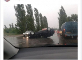 На мокрой дороге воронежских ВАИ иномарка перевернулась вверх дном