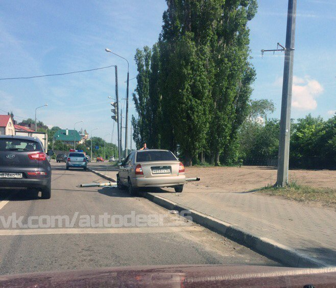 Утром 31 мая группа «Подслушано у водителей Воронежа» разместила фотографию ДТП на набережной Массалитинова. Пост назывался «Борьба со светофорами». На изображении было видно, как автомобиль «Хенде Акцент» снес одну из опор светофора на набережной.