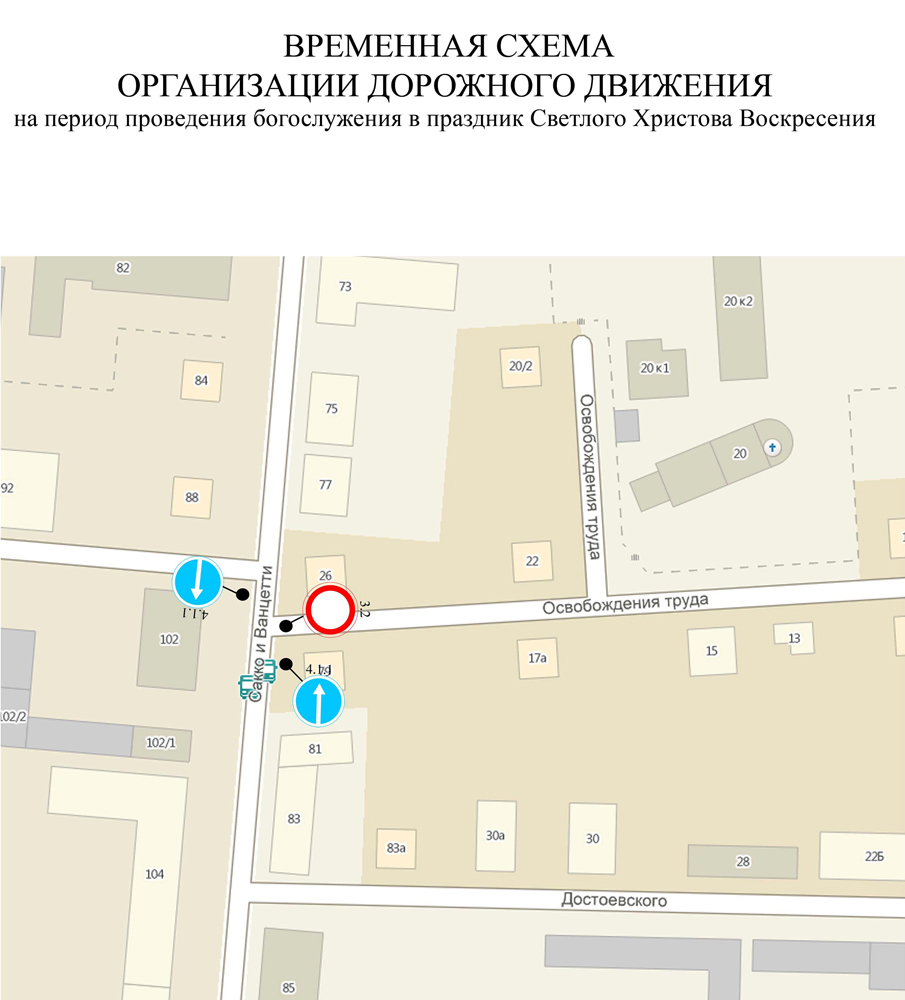 Улицу Освобождения труда перекроют в ночь с 11 на 12 апреля. Проезд от улицы Сакко и Ванцетти по улице Освобождения труда будет закрыт с 22 часов до 5 утра. Улицу перекроют в связи с богослужением на Пасху, отмечает пресс-служба мэрии.