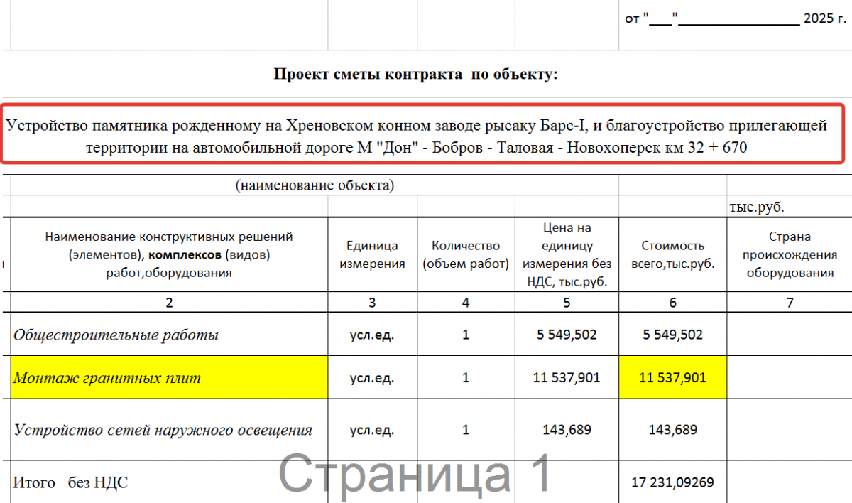 Что касается устройства памятника хреновской лошади, то кроме бронзы планируется использовать при благоустройстве объекта такие дорогие материалы, как гранит «Габбо-диабаз» и «Мансуровский 1». В проекте сметы контракта записано, что монтаж гранитных плит составит 11,5 млн рублей.