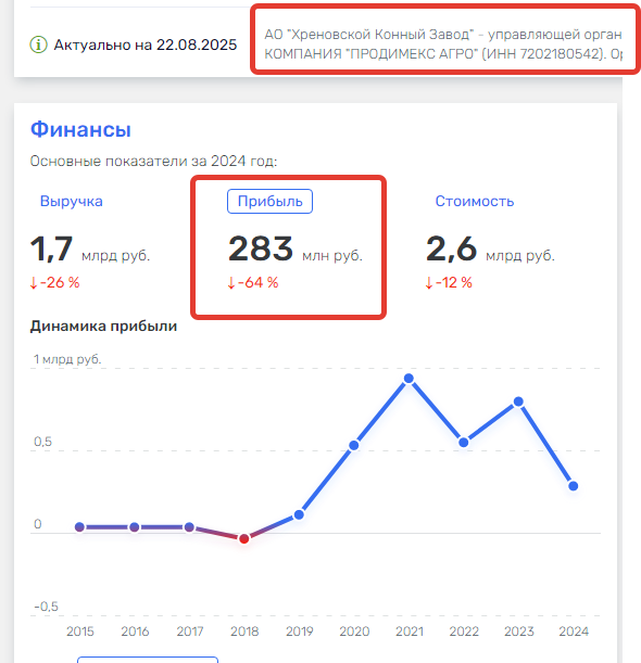 данные из открытых источников, финансовые результаты деятельности за 2024 год АО «Хреновской конный завод»