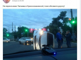 На воронежском перекрестке от удара «Солярис» перевернуло набок