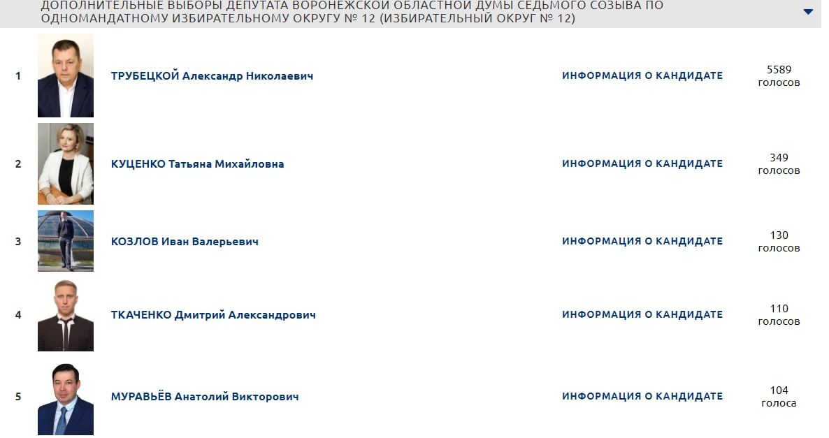 На фоне оглушительной победы двух варягов и одной воронежанки ( депутата Ревенко с 95,6 тысячами, функционера ОНФ Кастюкевича с 75,7 тысячами и главрача Тулиновой с 87,1 тысячью голосов) успех господина Трубецкого (5589 голосов) возможно, не выглядит впечатляющим. Но четверо его ближайших конкурентов не набрали и по 500 голосов воронежцев.