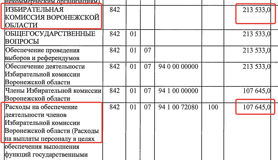 В законе Воронежской области "Об бюджете области на 2026 год" , в целом на содержание и мероприятия облизбиркома в текущем году заложено 213,5 млн рублей.