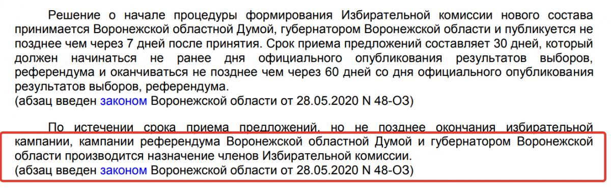 скриншот из регионального закона "Об избирательной комиссии Воронежской области"