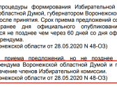 Это процедура связана с тем, что у нынешнего состава облизбиркома заканчивается пятилетний срок полномочий. Согласно региональному закону «Об избирательной комиссии Воронежской области», решение о начале процедуры формирования комиссии нового состава принимается Воронежской облдумой и губернатором, а срок приема предложений по кандидатурам составляет 30 дней.