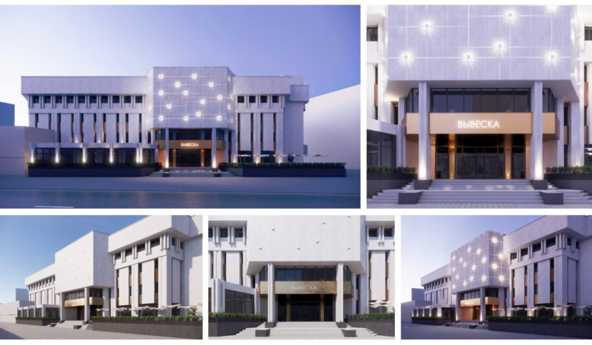 Специалисты разработали несколько вариантов обновления здания. Первый из них предполагает современную интерпретацию фасада, основанную на принципах деликатного вмешательства. В рамках этого варианта произойдет формирование новой архитектурной доминанты – пластичной центральной вставки с акцентами из бронзовых панелей. Будет сохранена существующая каменная отделка здания.