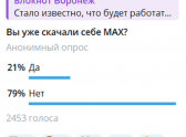 На днях также было анонсировано, что МАХ попадет в «белый список», благодаря чему будет функционировать даже во время отключения мобильного интернета. Мы решили поинтересоваться, насколько популярно приложение на данный момент и спросили у своих подписчиков в Телеграм, скачали ли они его?