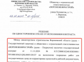 Из-за медленных работ минстрой в октябре прошлого года принял решение об одностороннем отказе от исполнения контракта с ООО "Воронежеврострой". Кстати, изначально стоимость контракта была 445 млн рублей, а затем выросла до 463 млн.