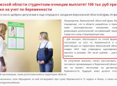 В этом документе подчеркивается, что на получение выплаты 100 тысяч рублей могут рассчитывать гражданки РФ, постоянно проживающие в Воронежской области не менее трех лет на момент постановки на диспансерный учет по беременности. Будущая мама должна очно обучаться в образовательной организации, также расположенной на территории области.