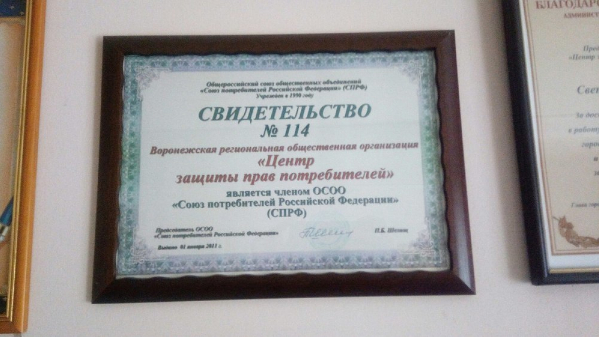 Воронежская региональная общественная организация «Центр защиты прав потребителей» существует с 2006 года и за последние пять лет к ним поступило более двенадцати тысяч заявлений, оказано около десяти тысяч консультаций. Юристы центра 97 % дел завершают взысканием в судебном порядке в пользу потребителя.