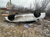 Водитель не справился с управлением, допустив съезд в левый по ходу движения придорожный кювет, после чего машина опрокинулась.