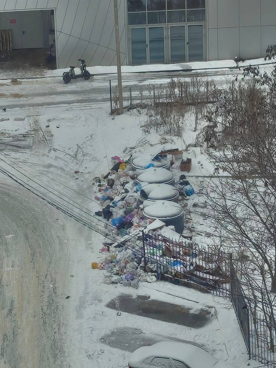 Она прислала фотографии, на которых запечатлены сильно переполненные мусорные баки, а вокруг разбросаны разорванные пакеты с отходами.