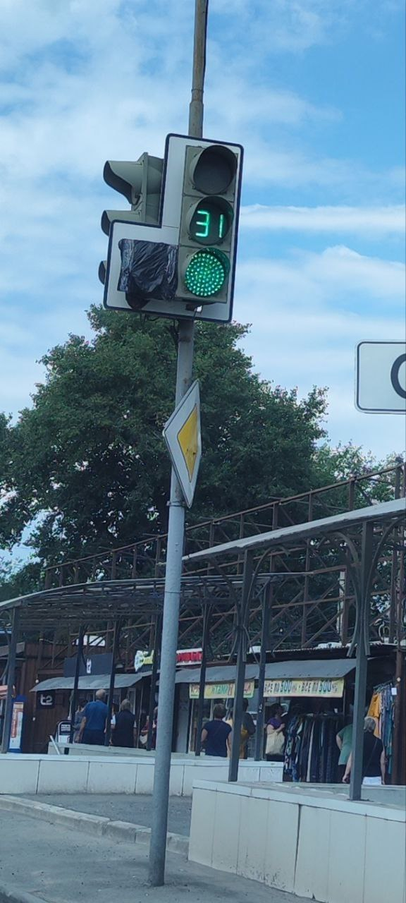 Такое обстоятельство возмутило автомобилистов. Они стали жаловаться на невозможность быстро попасть с Димитрова на Волгоградскую. Стрелка светофора, замотанная пакетом, на фото выглядит так: