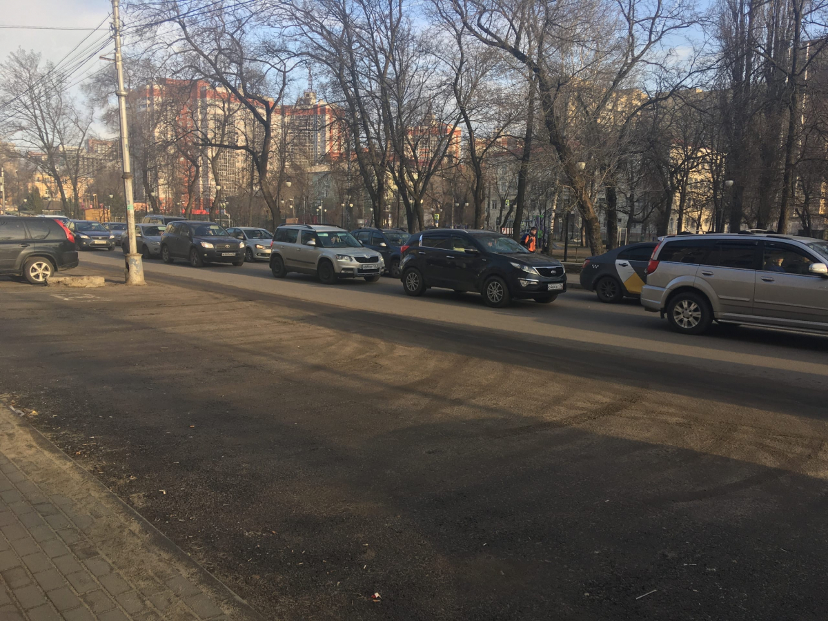 Утро 10 марта началось с неразберихи на дорогах в центре Воронежа. На улице Кольцовская не работали светофоры, из-за чего водителям и пешеходам пришлось самим ориентироваться в бесконечном потоке машин.