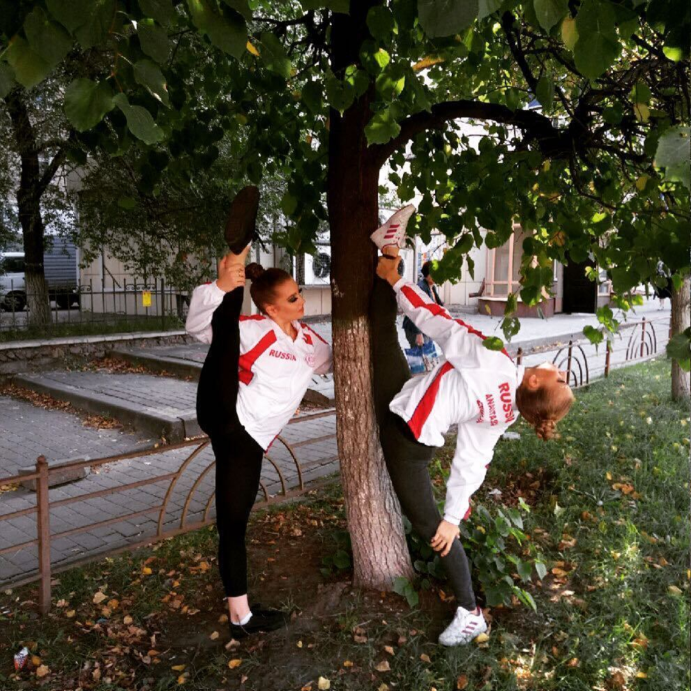 Невероятную растяжку показали у дерева в Воронеже две девушки