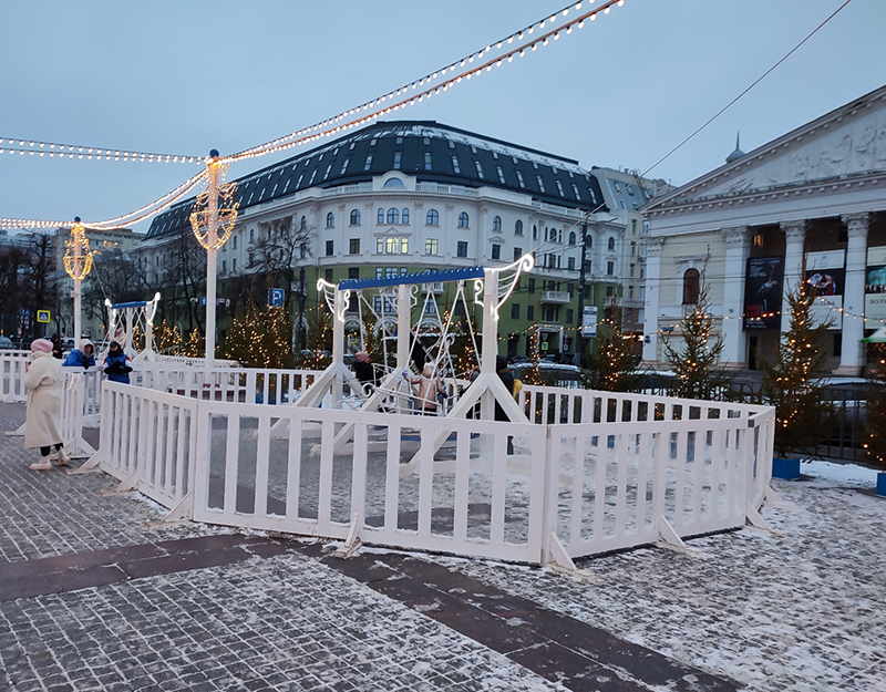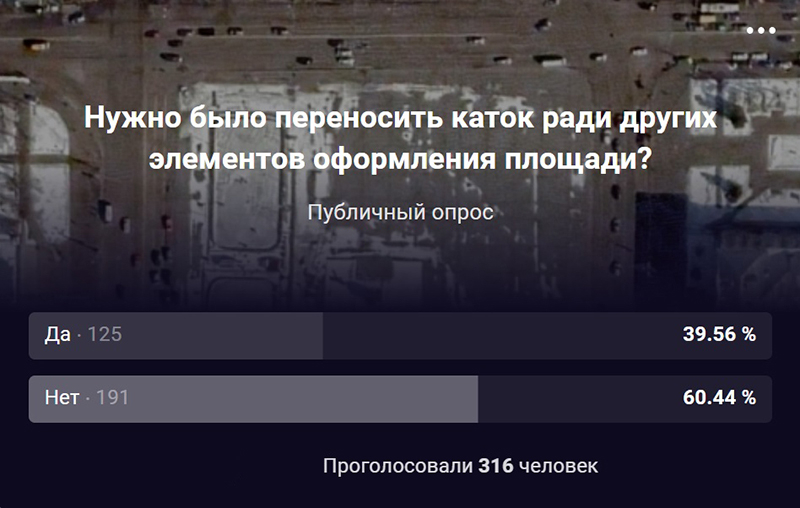 Целесообразно было бы каток на площади все-таки оставить, а вместо него убрать, например, карусели – все равно толкать их будет далеко не каждый.