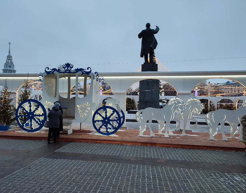 Остальное новогоднее убранство площади Ленина нельзя назвать фантастическим, но и каких-то неприятных ощущений оно не создает – все достаточно симпатично. Тут можно просто посмотреть фотографии.