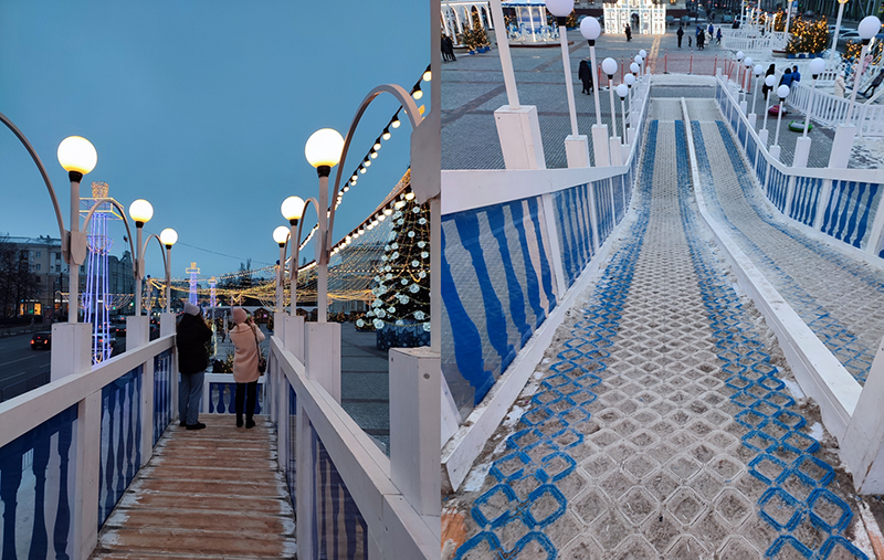 Если говорить про архитектурную составляющую новогоднего оформления площади, то вторым после вензеля Петра объектом общественной критики стало решение убрать каток с площади Ленина. Для кого-то это было удобное место в центре города, где можно покататься (Центральный парк все-таки не так удобен), кому-то просто нравилась уютная атмосфера, создаваемая катком.