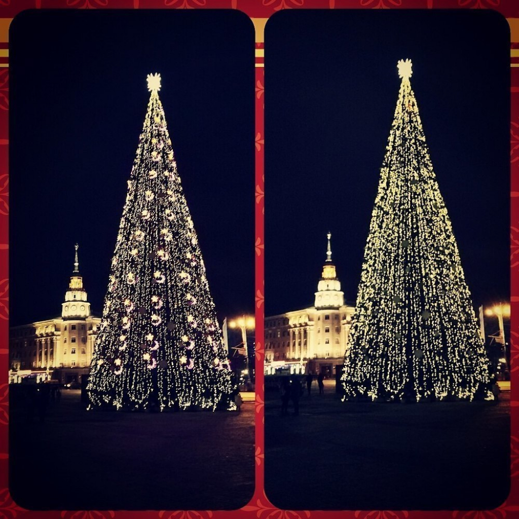 Монтаж ёлки на главной площади Воронежа начался 1 декабря. Прошло меньше чем две недели, а ёлка стала нарядная: гирлянды, 34 тысячи светодиодных лампочек и 2,5 тысячи игрушек.