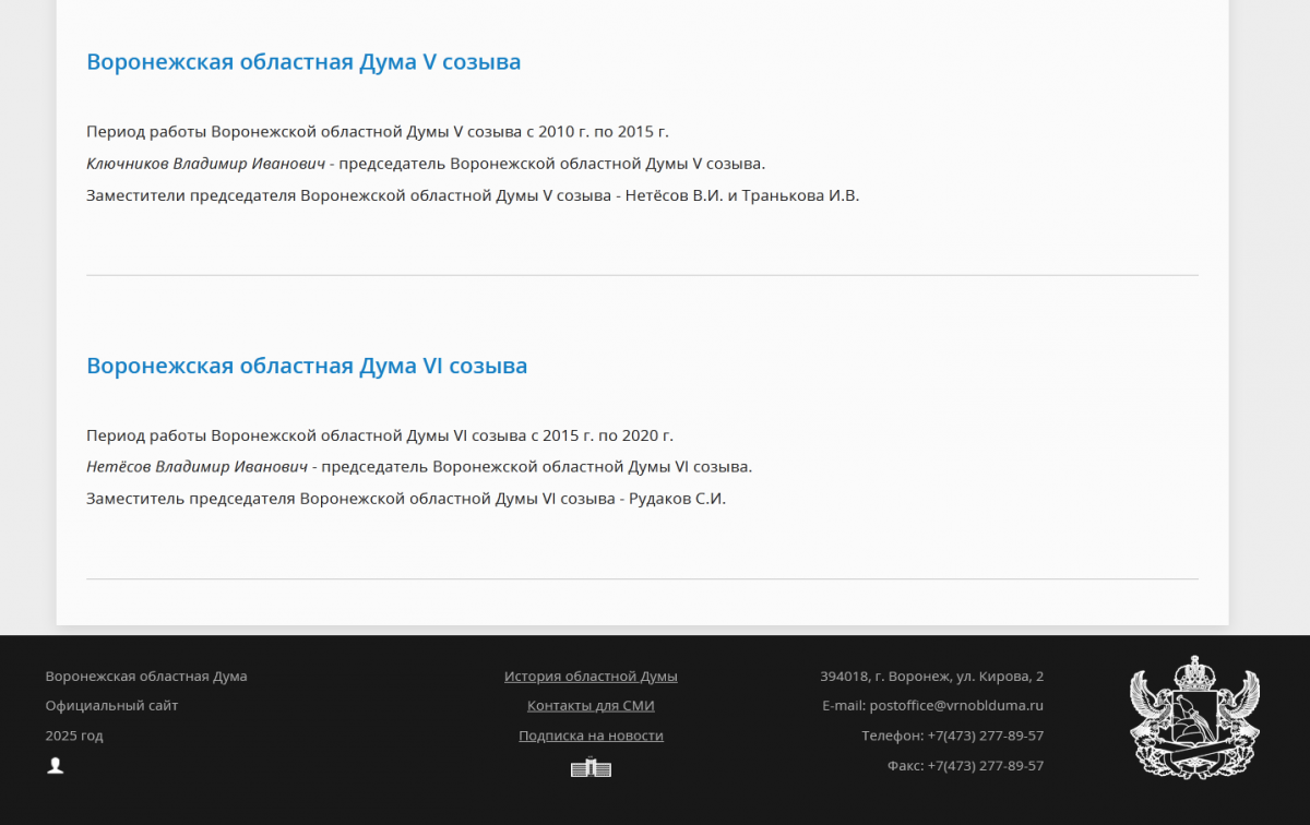 Вот, к примеру, что могли узнать избиратели о работе нового депутата Николая Нетяги. Первая новость на страничке депутата говорит о том, что «Депутаты Воронежской областной думы VII созыва получили депутатские удостоверения». Правда, это произошло в сентябре 2020 года и не имеет никакого отношения к его депутатской деятельности, ведь Николай Николаевич является депутатом облдумы VIII созыва, он был избран в сентябре нынешнего года.