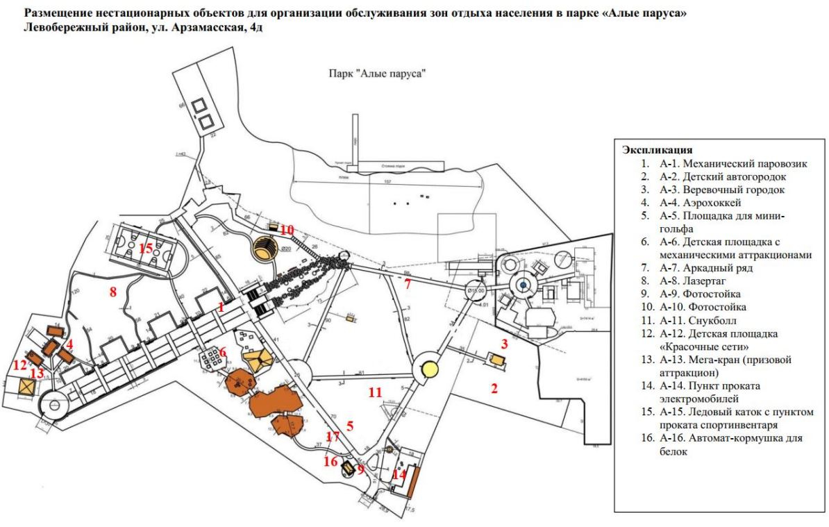 Публикуем, где именно будут размещены нестационарные объекты в зонах отдыха населения на участках парков и скверов: