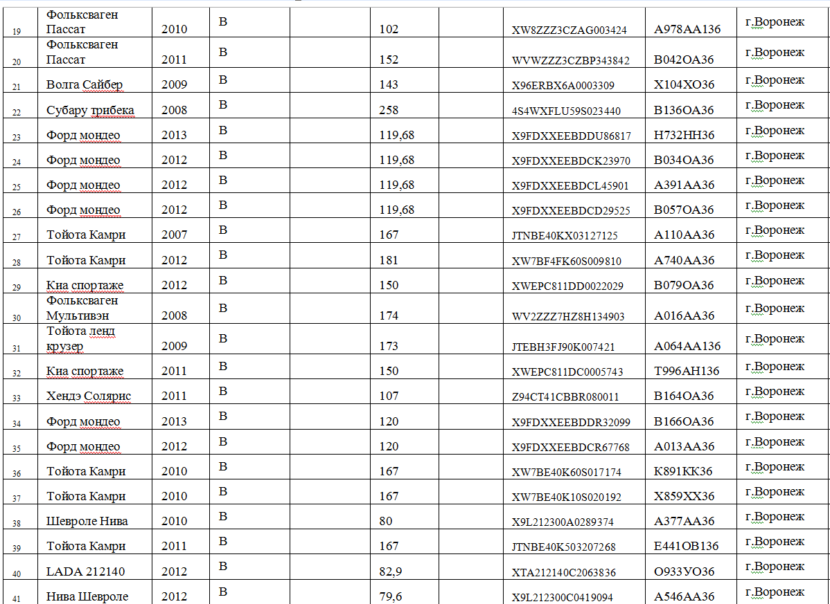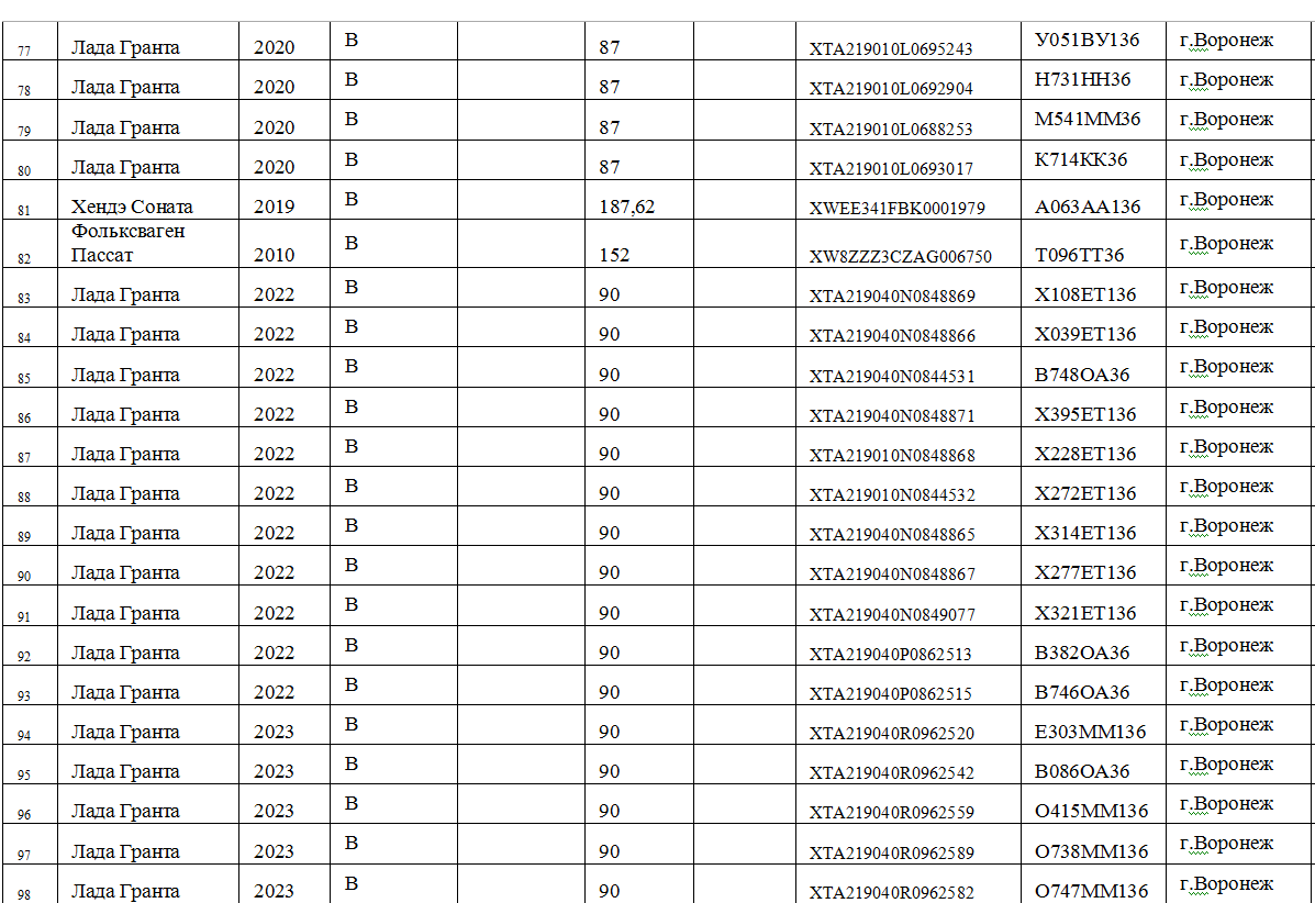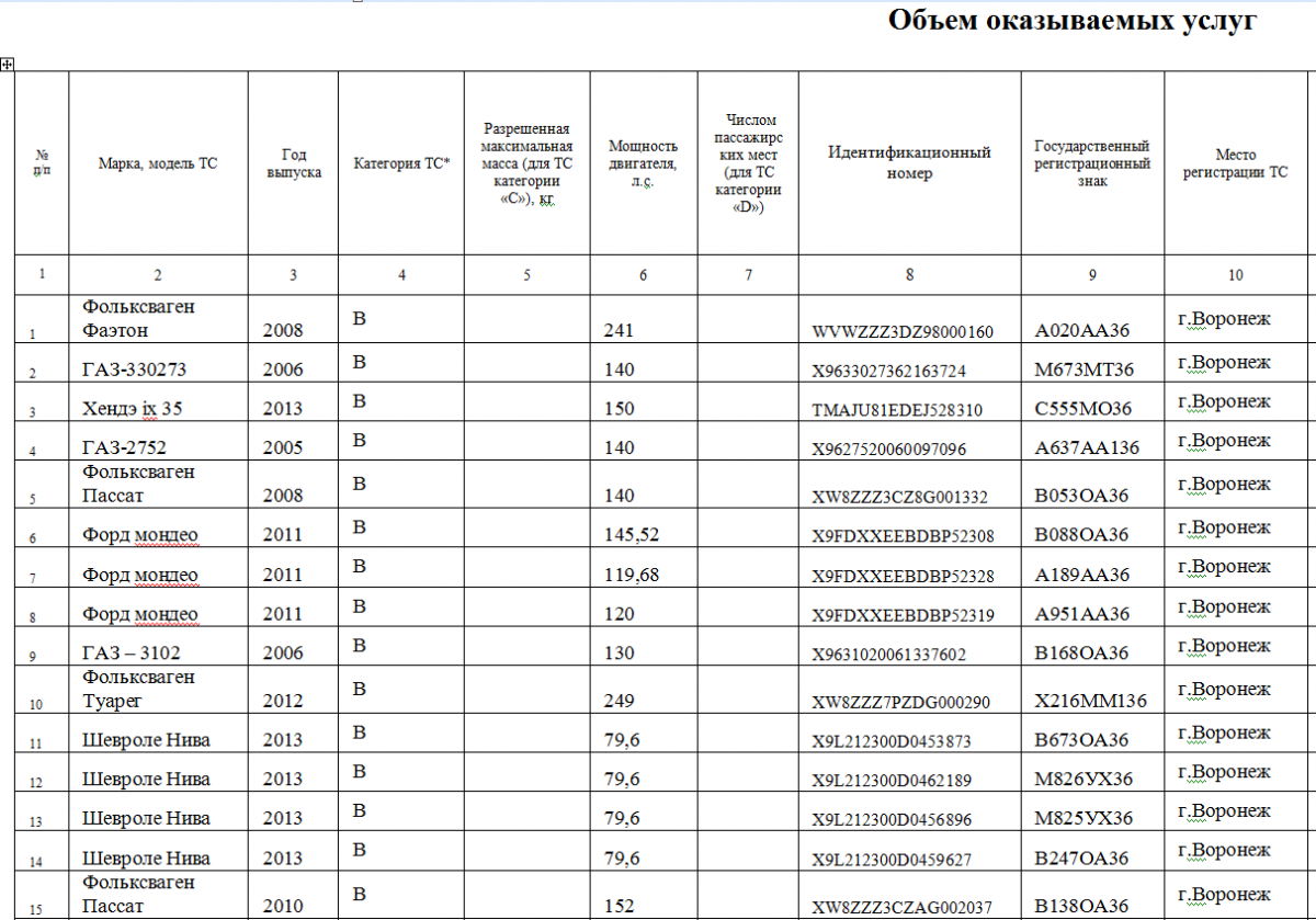 Общий список служебной автотехники мэрии Воронежа в документации выглядит так: