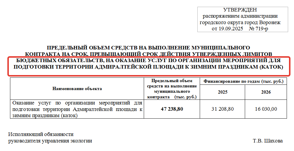 Напомним, в прошлом году на эти же «зимние торжества» было израсходовано 58 млн 80 тысяч рублей, а при проведение муниципальных торгов на эти услуги удалось сэкономить ровно 1000 рублей, что при общей стоимости прошлогоднего контракта в общем-то копейки.