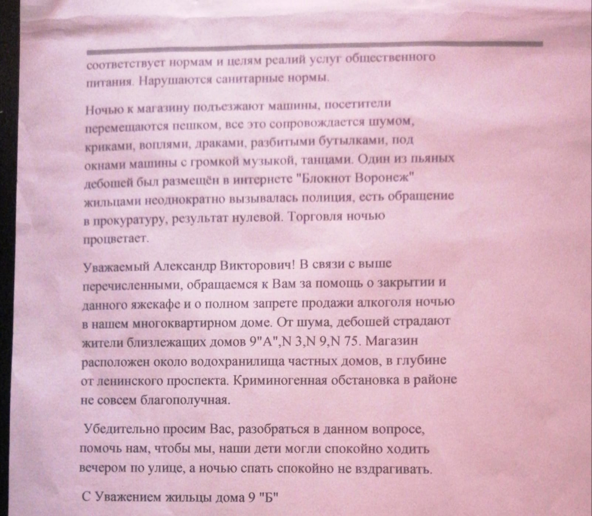 Когда воронежцы писали губернатору Александру Гусеву, то «убедительно просили» его разобраться с круглосуточной вакханалией. В первую очередь жители ближайших домов переживают за безопасность своих детей. Именно ради этого просят о помощи.