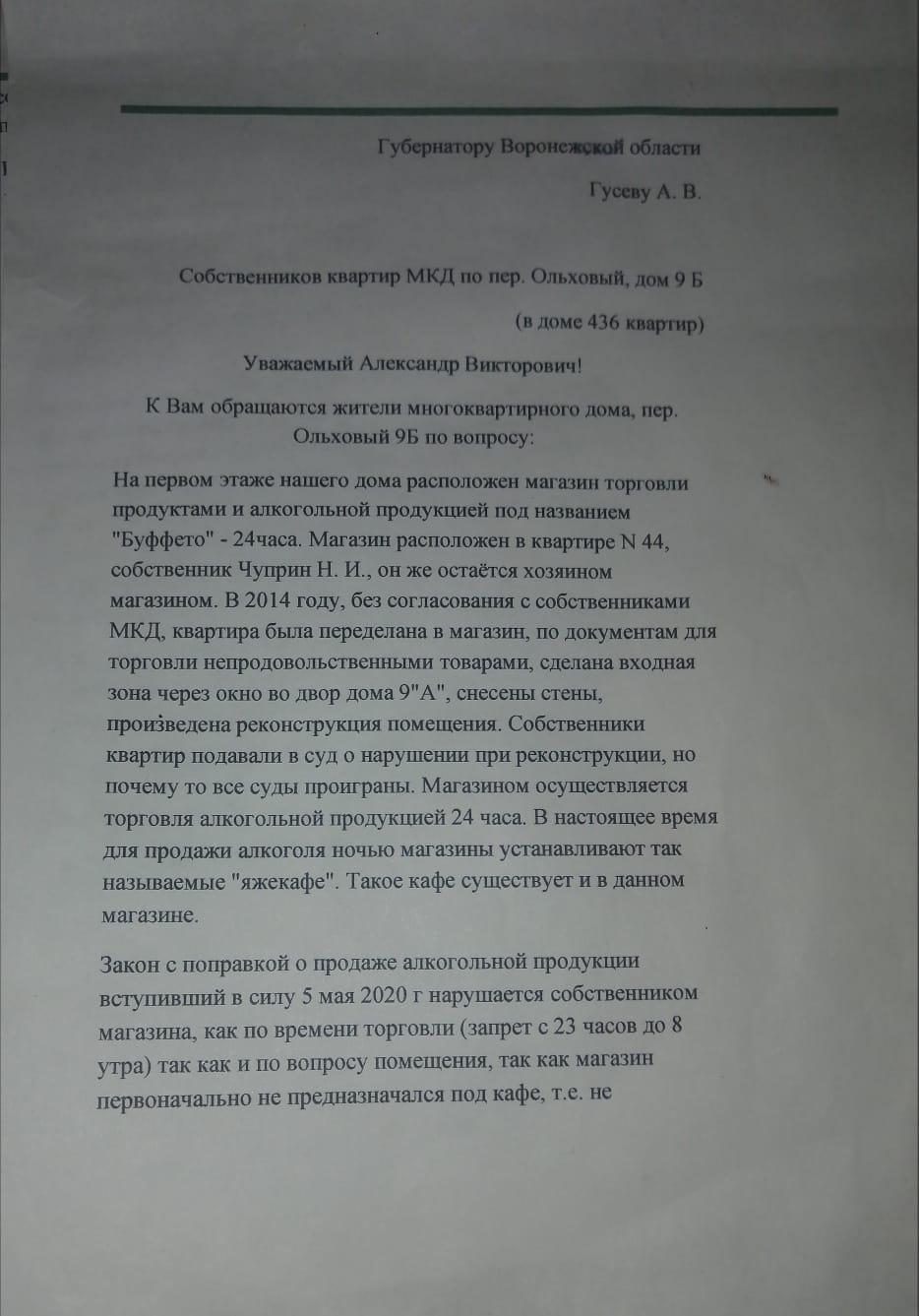 Воронежцы считают, что нахождение в жилом доме магазина-кафе «Буфетто», круглосуточно торгующего алкоголем, нарушает нормы ФЗ-145, который с 2020 года запретил маленьким питейным заведениям базироваться в МКД.