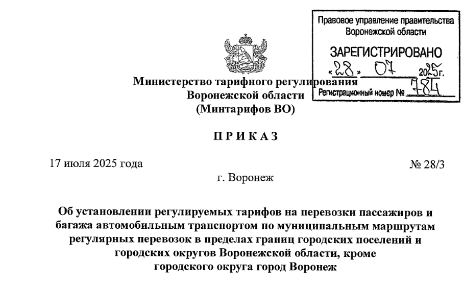 С 11 августа повысятся тарифы на перевозки пассажиров и багажа автомобильным транспортом по муниципальным маршрутам регулярных перевозок в пределах границ городских поселений и городских округов Воронежской области. Об этом сообщается в приказе регионального министерства тарифов, документ был подписан еще 17 июля и опубликован в минувший вторник.