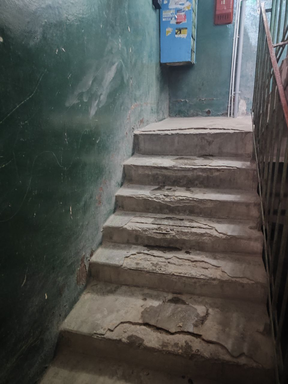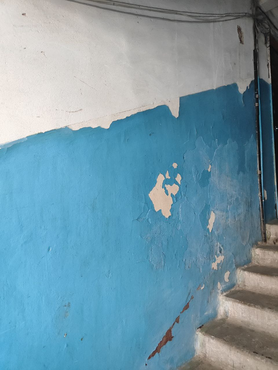 Состояние общего имущества дома, которое также обязана содержать управляющая компания, жительница описывает как «крайне печальное». Присланные ею фото подъезда красноречивее любых слов: облупившаяся краска на стенах, грязь, обвалившиеся нижние ступени лестницы.