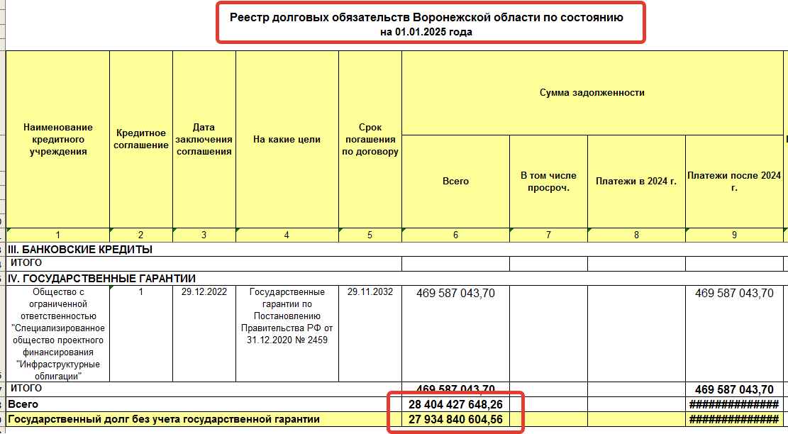 данные воронежского минфина на 01.01.2025.