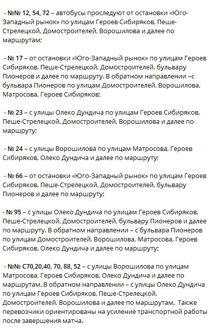 Речь идет о запрете парковки у одноименного стадиона, запрете проезда на Писателя Маршака, а также о корректировке схемы движения общественного транспорта.