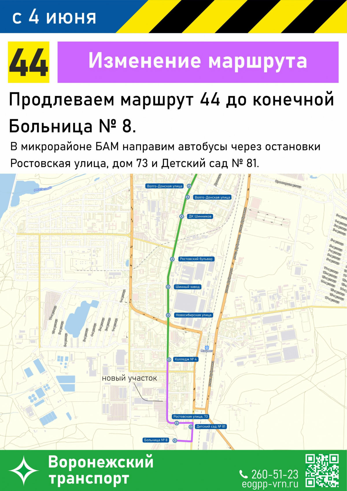 Маршрут будет пролегать через Московский проспект, улицу Антонова-Овсеенко, бульвар Победы, улицы Шишкова, 45-й Стрелковой Дивизии, Транспортной, Урицкого, Ленина, проспект Революции, улицу Степана Разина, Чернавский мост, по Ленинскому проспекту, улицам Лебедева, Менделеева, Ростовской, Корольковой, далее – до восьмой больницы.