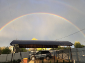 Сначала в небе появилась радуга, которая развеяла тучи, а после небо стало огненным, озарив все вокруг.