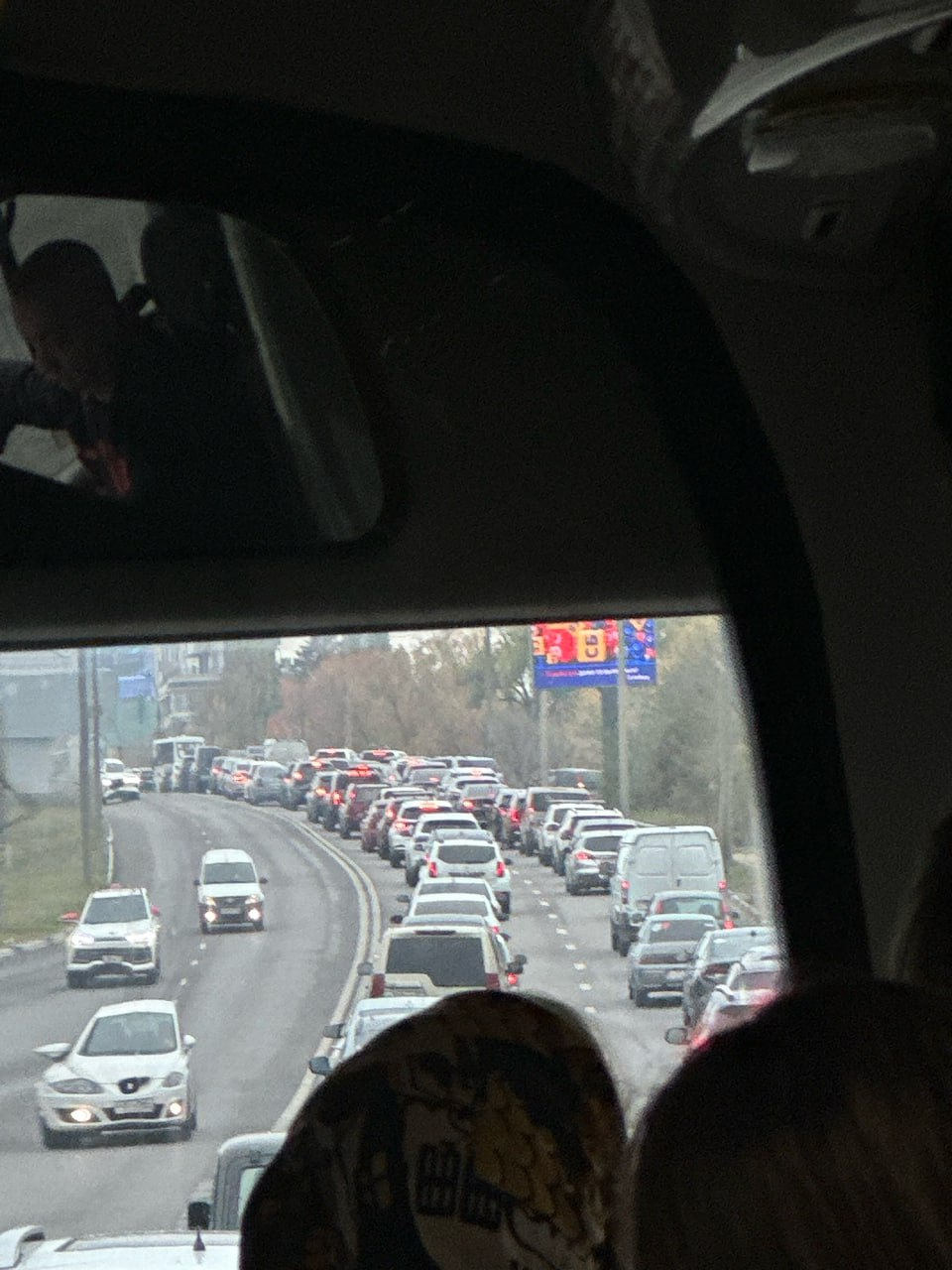 «В автобусе – баня, стоим почти без движения в этой пробке», – комментирует ситуацию читательница «Блокнота», находясь в общественном транспорте.
