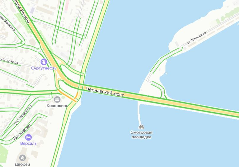 Хотя на онлайн-картах заторов не видно. Судя по данным сервиса «Яндекс. Карты», на Чернавском мосту сейчас ситуация «зелёная», то есть без пробок, чего не скажешь в реальности.