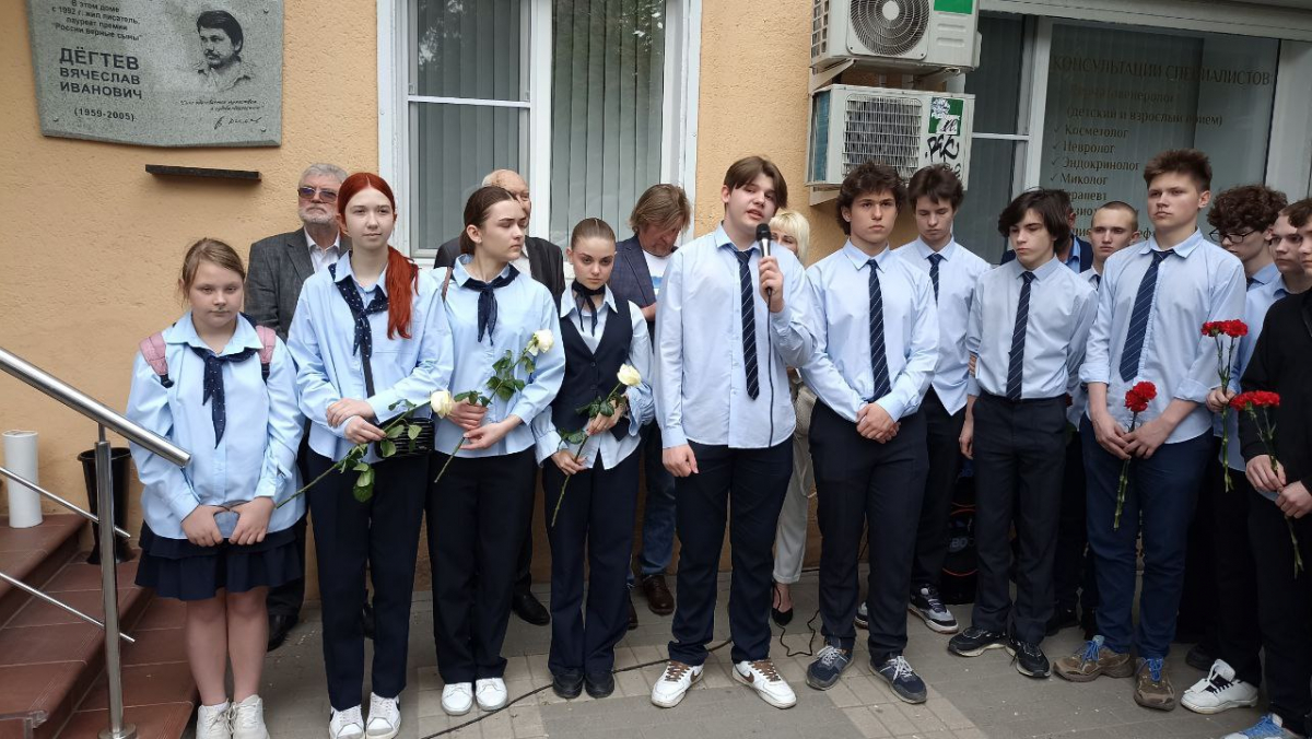 Также на церемонии открытия мемориальной доски были учащиеся образовательного центра «Траектория». На базе этого учреждения на протяжении последних 7 лет действует кабинет-музей в честь Вячеслава Дегтева. Там представлены все журнальные и книжные публикации автора, кандидатские и докторские диссертации по творчеству писателя, его личные вещи.
