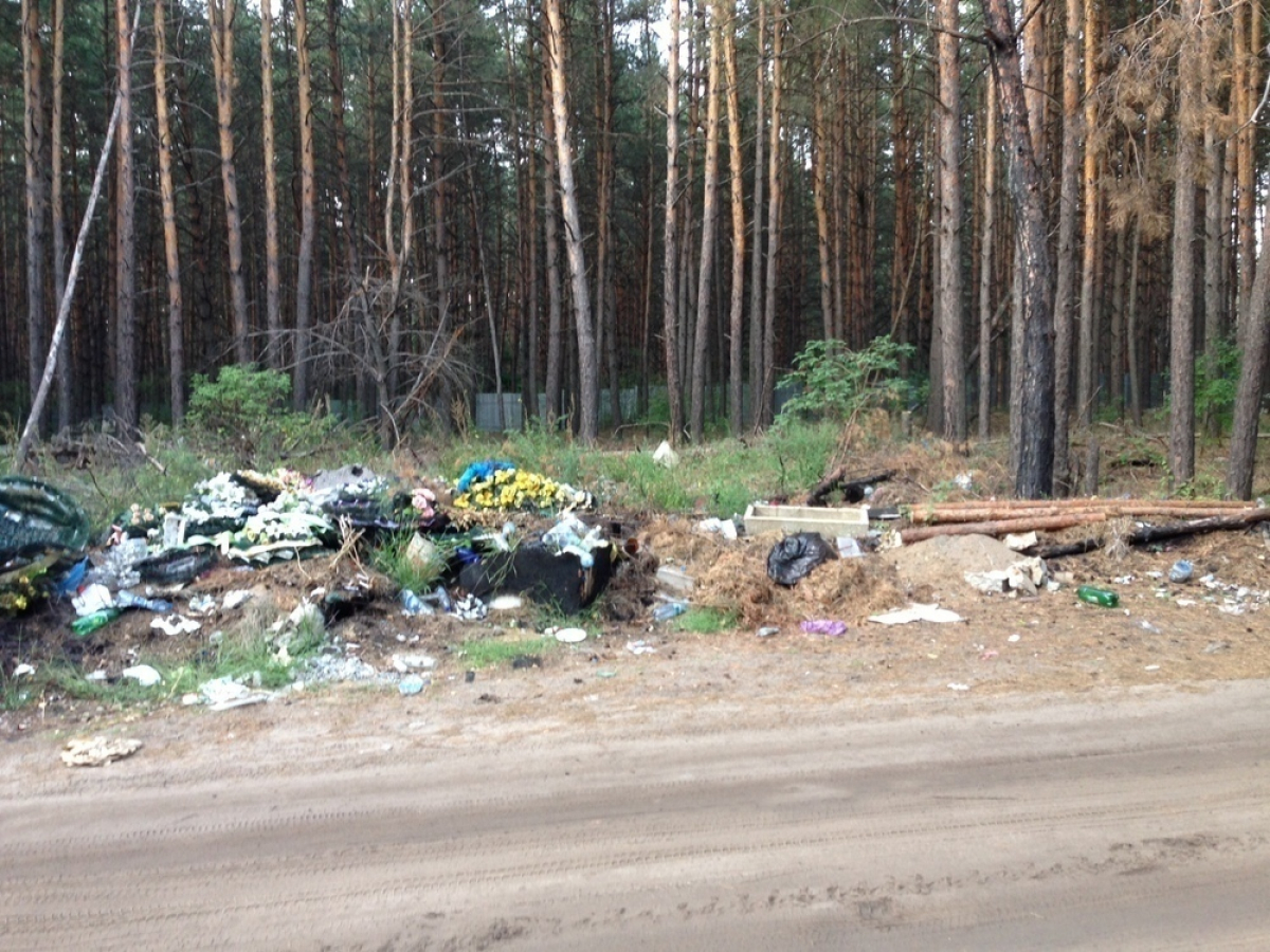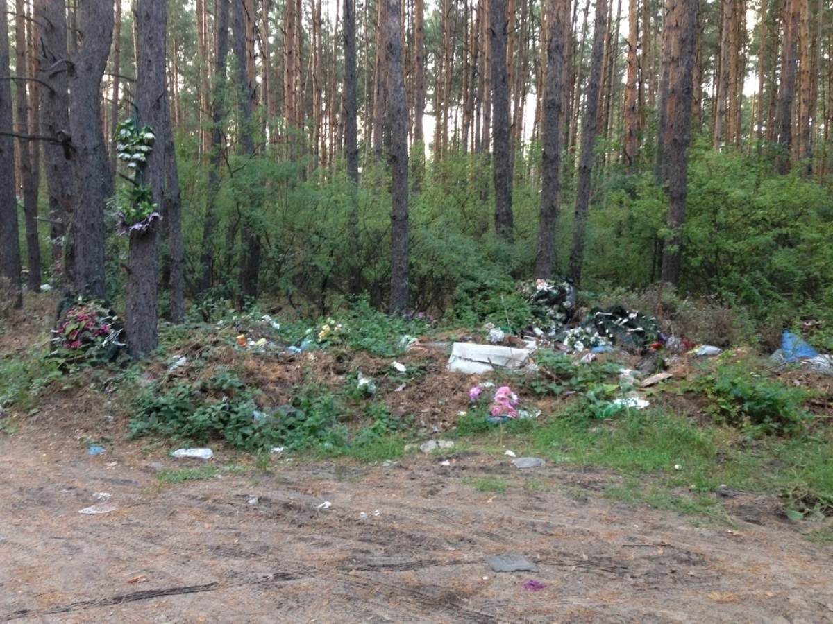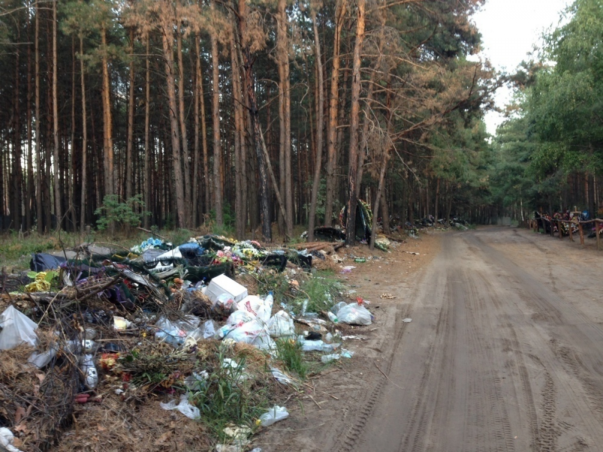 Наши журналисты отправились в микрорайон Подгорное. Посредине леса расположено небольшое кладбище. Его окружает высокий забор. Рядом с могилами находятся огромные горы мусора. Словно отходы не убирали несколько лет.