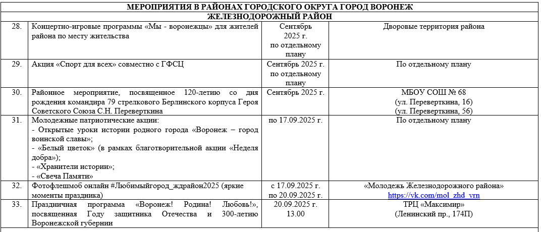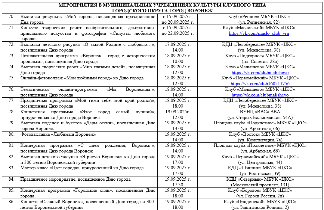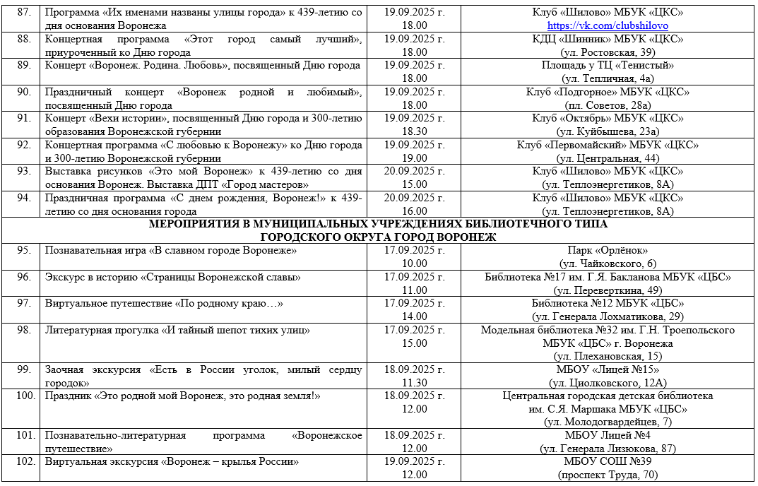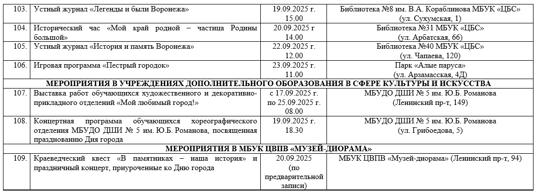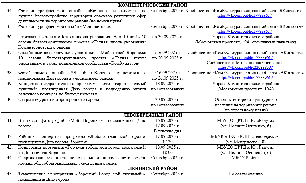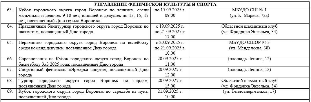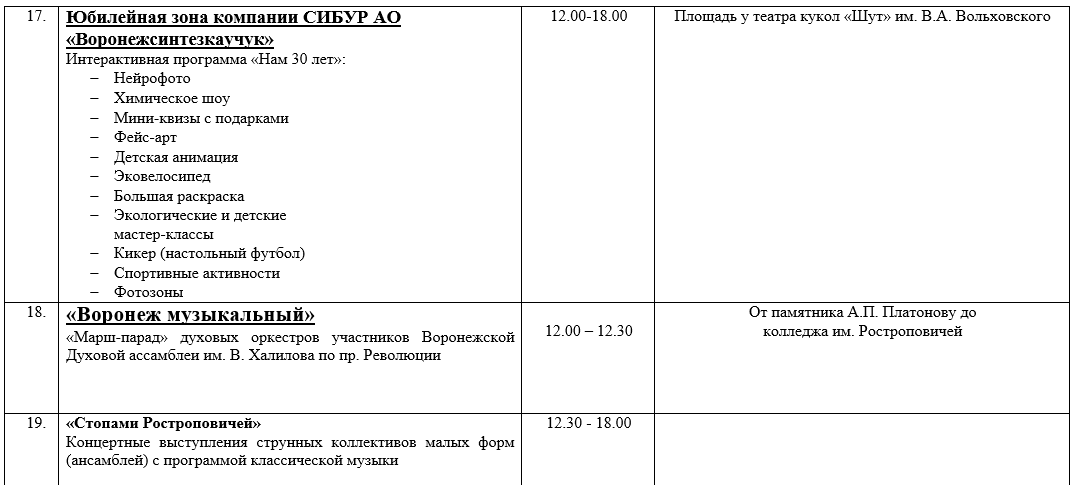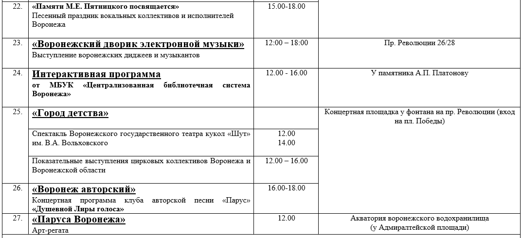 Опубликован план мероприятий на День города -2025 в Воронеже