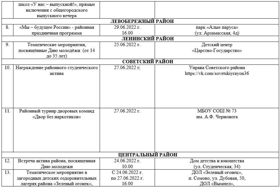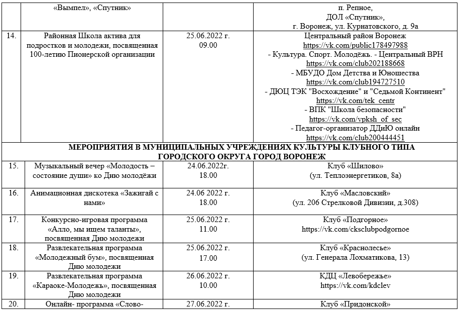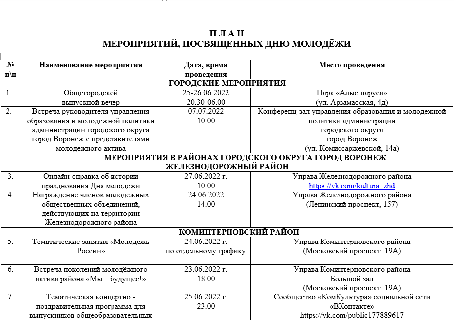 Опубликован план мероприятий на День молодежи в Воронеже